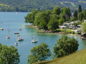 Anden campingplads Seecamping Berghof Rolig plads, direkte ved søen, omgivet af bjerge. Oswaldiberg, Villacher, Kanzelhöhe, thermalbad i Villach, vandrestier. Dukke- og svampemuseum… Åben: april - november
