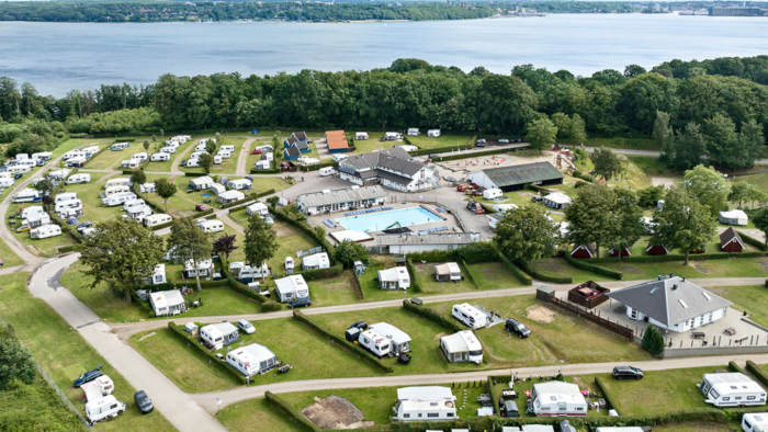 Plads med speciel hyggelig atmosfære. Parklignende omgivelser lige ned til Flensborg Fjord. Udsigt fra de fleste pladser. Svømmehal og Legehus…