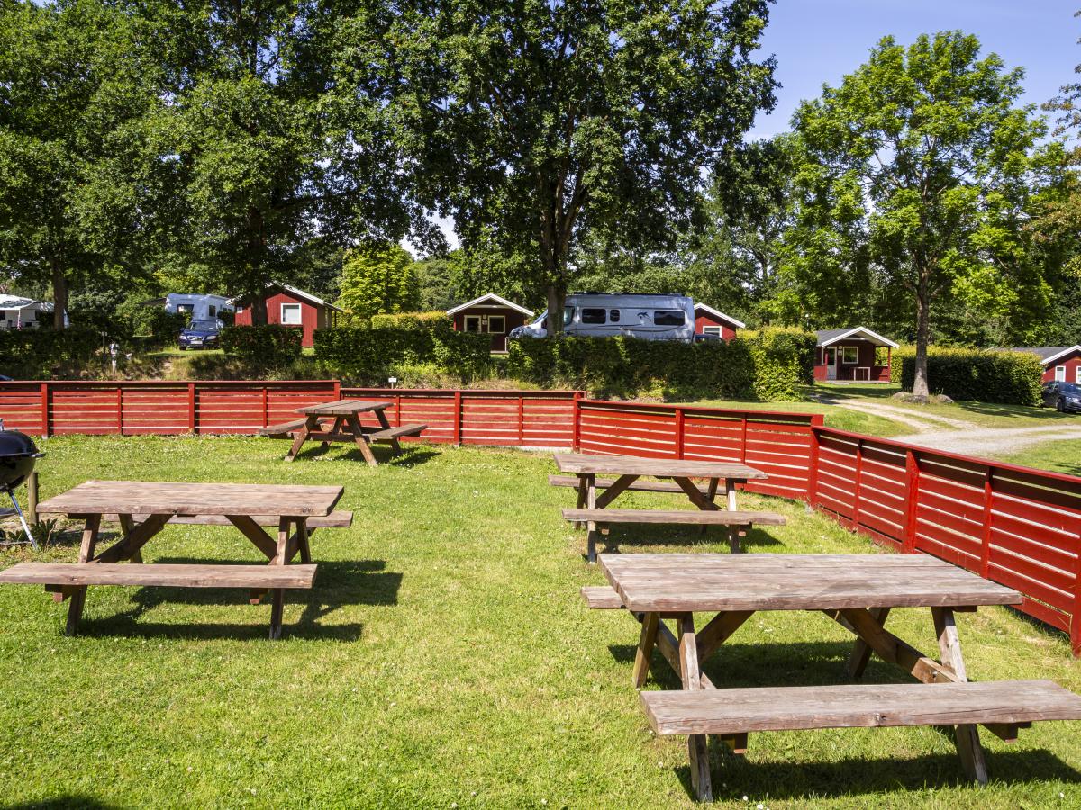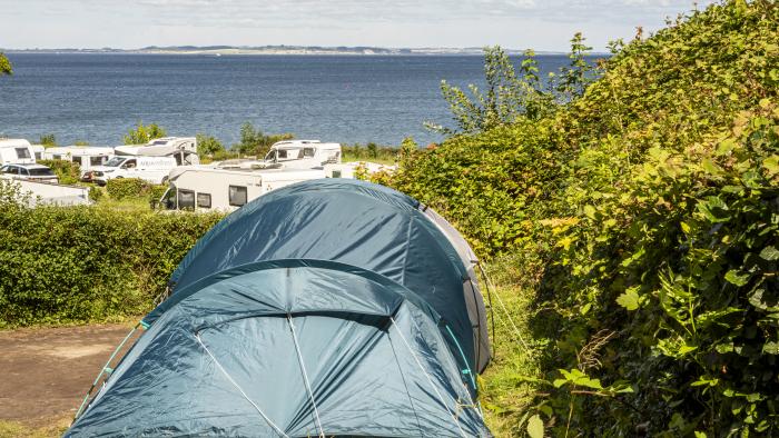 Wenn Sie auf dem Fahrrad anreisen, erwartet Sie ein großer Bereich für Zelte mit windgeschützten Plätzen. Falls sich das Wetter nicht zum Aufstellen eines Zeltes eignet, können Sie auch eine charmante Ferienhütte (ohne Dusche und Toilette) mieten. Auf deren gemütlicher Terrasse können Sie die Sonne genießen – und falls Sie Lust auf Erlebnisse haben, stehen Ihnen die Einrichtungen und Aktivitäten des Campingplatzes zu Verfügung.